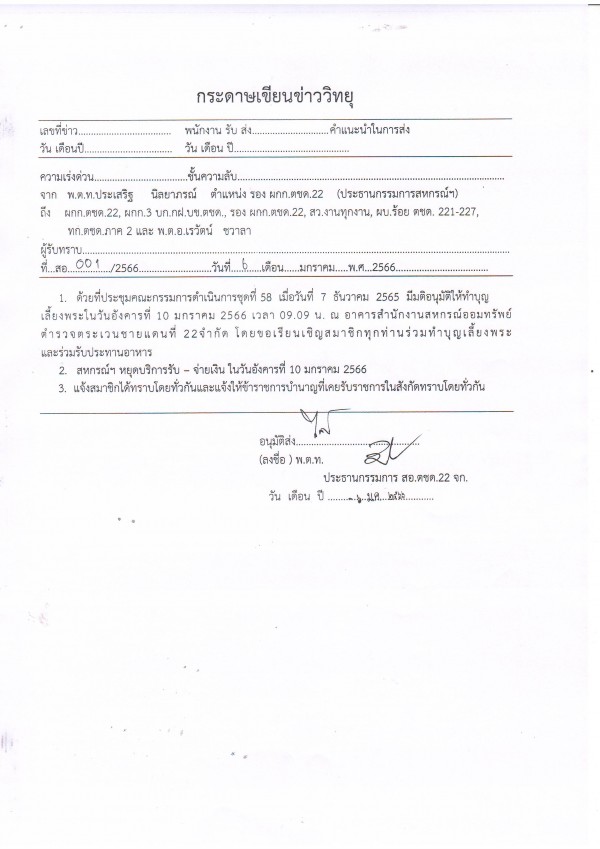 ขอเชิญทำบุญเลี้ยงพระ