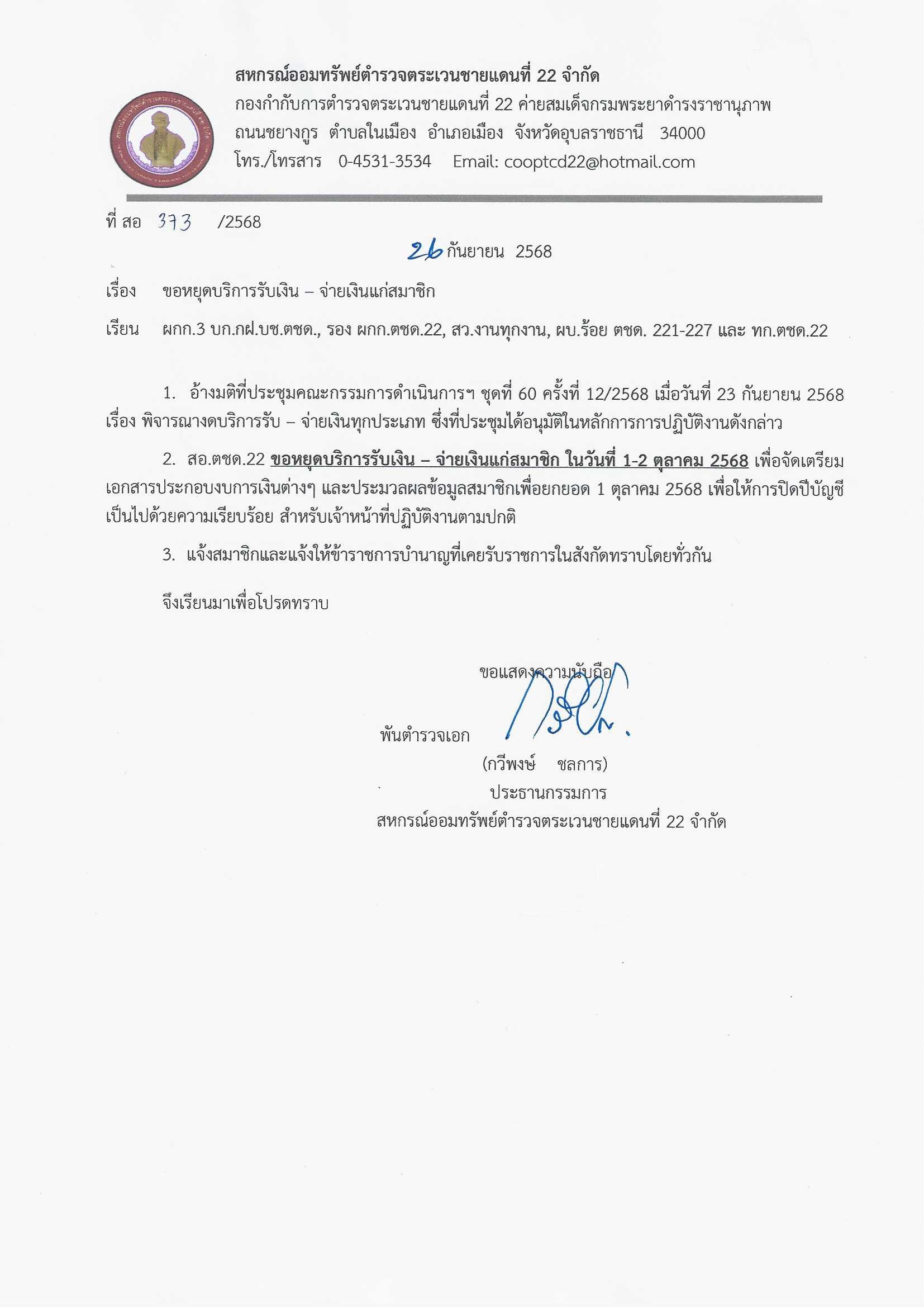 ขอหยุด รับ - จ่าย 1-2 ตค.2568